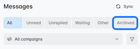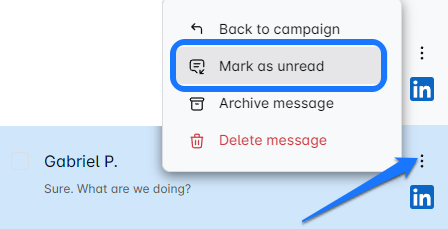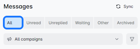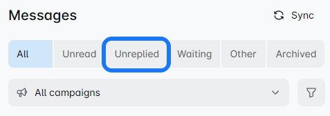 This is the default view of the inbox, where you can see messages from all the campaigns you’ve run on the HyperGrowth by Series-A. You’ll also get a glance at messages from all three inboxes that the Smart Inbox merges: LinkedIn, Sales Navigator, and Email 📧.